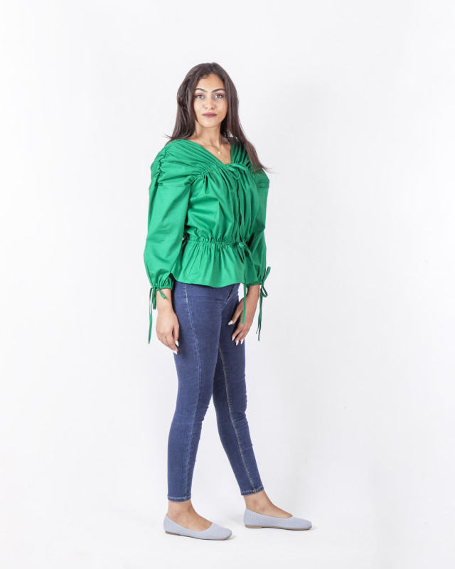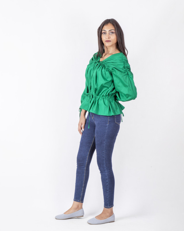 بلوزة قماش ببلين كم طويلوان سايزلون اخضر